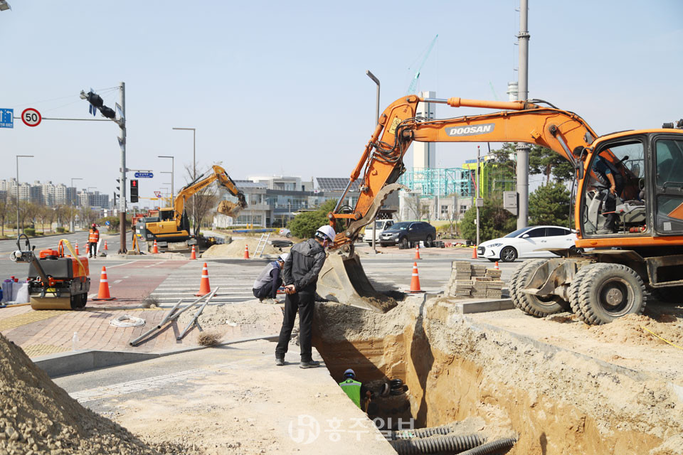 해당 공사는 교통량이 많은 충남대로에서 오후까지 계속 진행돼 지역 주민들의 불편이 가중됐다. 시공사인 LS전선의 김균찬 현장소장은 “나들목 사거리 공사 구간은 지난주 이미 공사를 마쳤고 도로포장은 자재 수급문제로 하지 못했는데 지자체나 회사로 공사구간 비포장으로 인한 차량 파손 민원들이 접수됐다”면서 “부직포로 마감하려고 보니 13일 비가 예보돼 있어 비포장보다 더 위험하다고 판단했고 주민들의 안전을 위해 긴급 간이 도로 포장을 하게 됐다”고 상황을 설명했다.