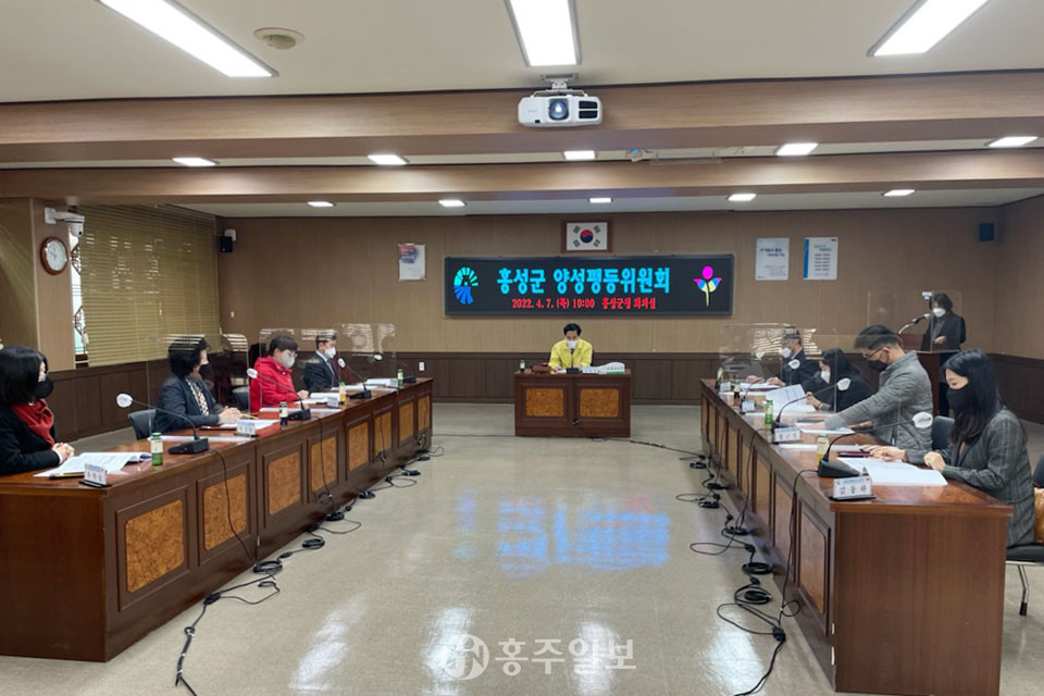홍성군은 지난 7일 군청 회의실에서 양성평등위원회 회의를 열고 양성평등기금을 활용한 공모사업 추진안 심의와 기초젠더거버넌스 운영을 보고받았다.<사진>