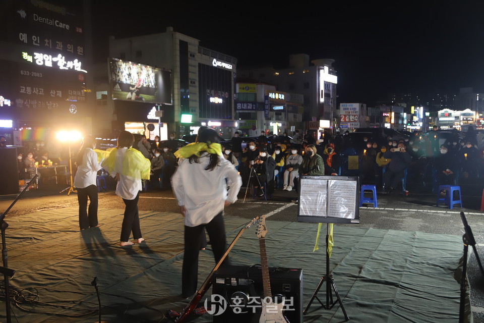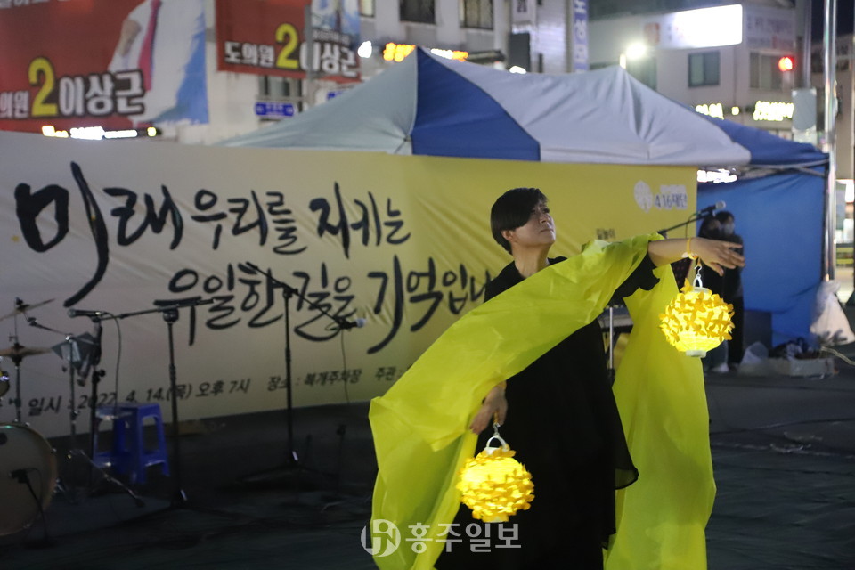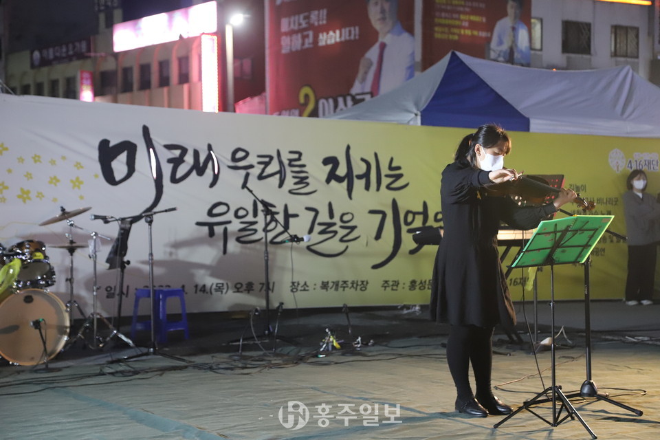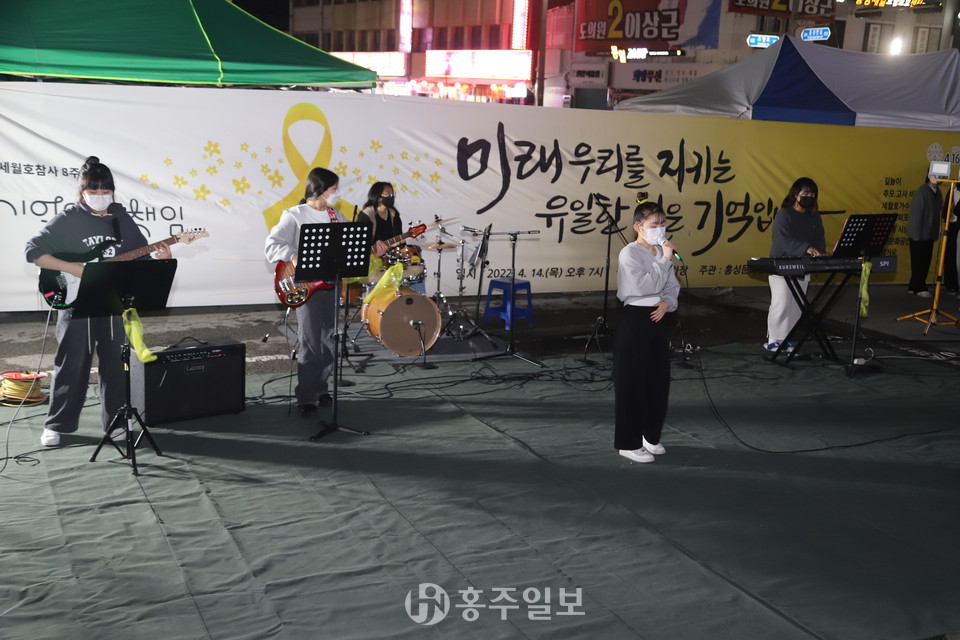 지난 2014년 4월 16일 299명의 사망자와 5명의 실종자가 발생한 세월호 참사가 일어난 이래 벌써 8년이란 세월이 흘렀다. 참사 8주기를 이틀 앞둔 지난 14일, 홍성복개주차장에서는 세월호의 단원고 희생자들 유족과 희생자들을 기리는 주민들이 모여 ‘홍성군 세월호 참사 8주기 추모문화제’를 개최했다.
