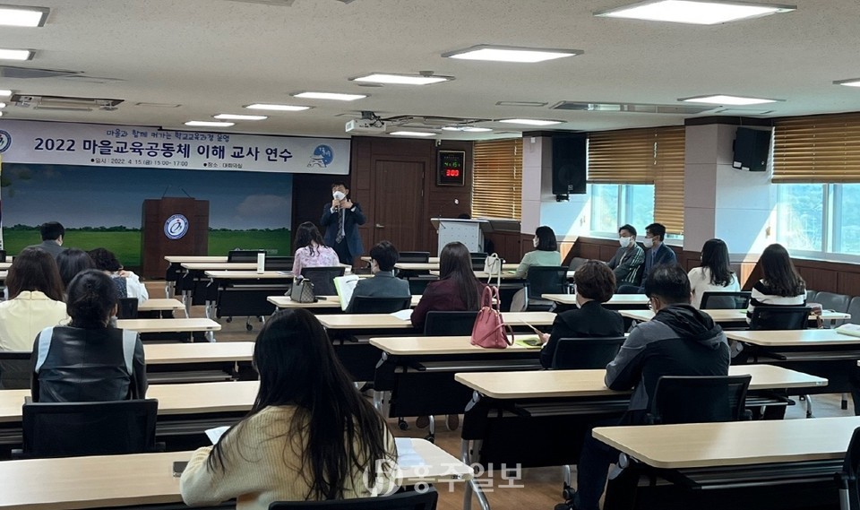 홍성교육지원청(교육장 주진익)은 지난 15일 마을학교 교사와 마을교육과정 참여 교사 40명을 대상으로 마을교육공동체 이해 교육 연수를 개최했다.<사진>
