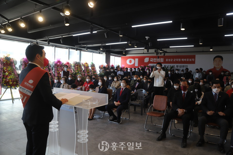 이번 행사에는 홍문표 국회의원, 이선균 홍성군의회 의장, 장재석 부의장, 김덕배·김은미 의원 등과 지역 각계 인사, 국민의힘 관계자 등 내·외빈이 사무소를 가득 메워 자리를 빛냈다.