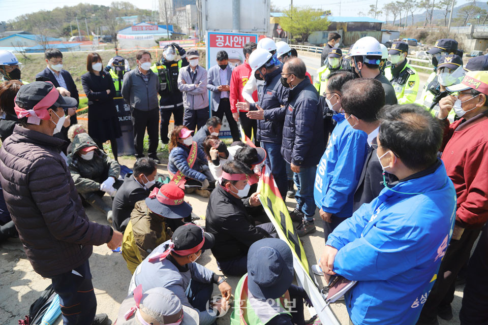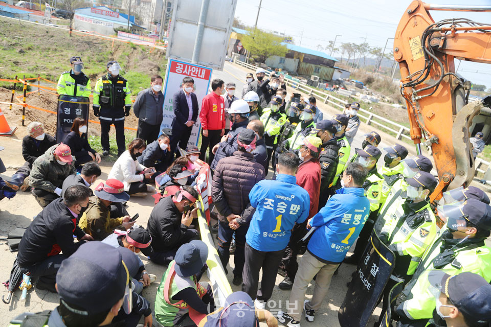 지난 14일에는 회사 측과의 협의로 주민들과 중장비 모두 철수하는 것으로 마감됐지만 15일에도 주민들이 공사현장을 막고 있어 회사 측은 포클레인을 시위현장 바로 앞으로까지 이동시키고 ‘공사를 하게 해달라’는 요구를 하기도 했다. 이 과정에서 이동 주민들과 회사 관계자가 언쟁이 벌어져 회사 측의 법적으로 조치를 취해질 수 있다는 경고와 주민 측의 날선 발언이 이어지기도 했다.