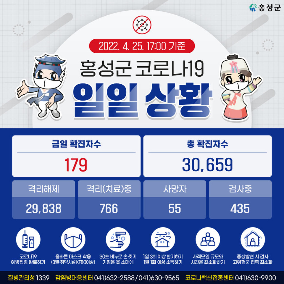 홍성군, 확진자 179명 발생… 누적 확진자 3만 659명