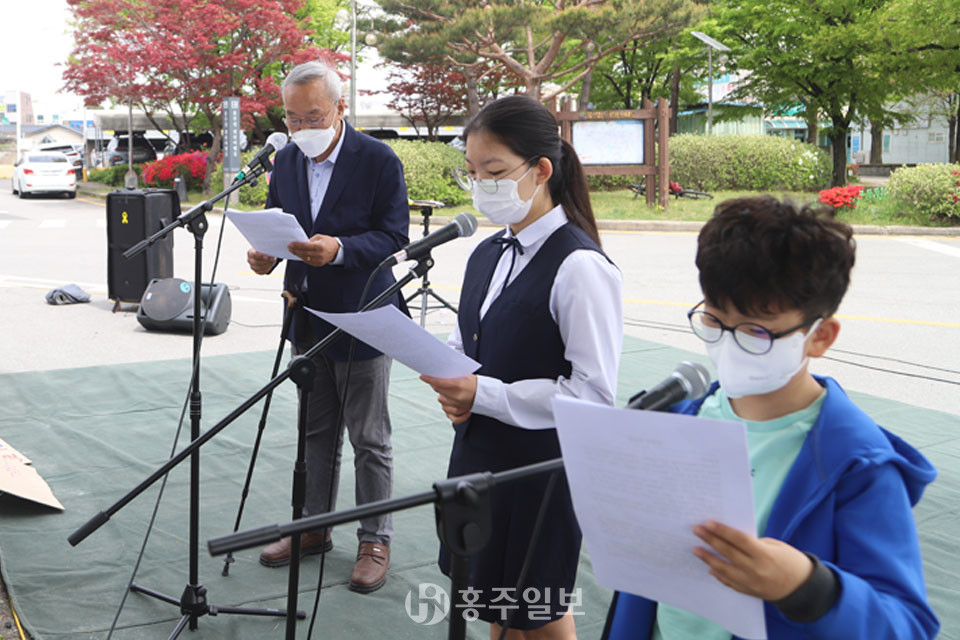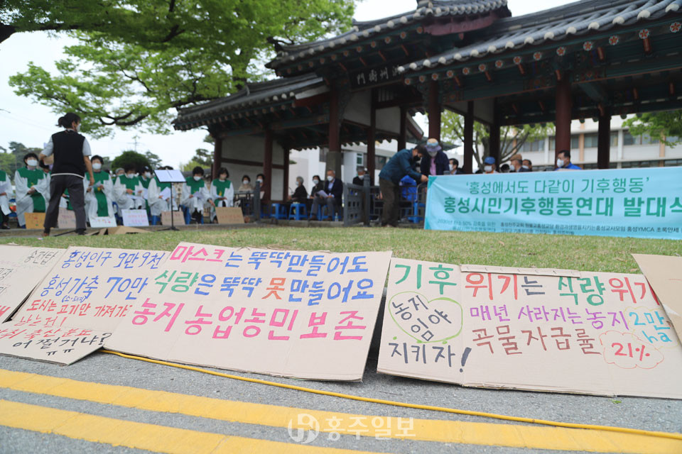 홍성시민기후행동연대는 이날 홍성군에 탄소 중립, 녹색성장 기본 조례 제정·실행과 탄소 중립(온실가스 배출제로) 계획을 수립하고 대응방안을 제시하라고 요구했다. 이번 행사의 사회를 맡았던 신은미 예산홍성환경운동연합 사무국장은 “요새 날씨가 유독 종잡을 수가 없다”며 “기후위기가 두려운 것은 약자에게 더 큰 피해가 있기 때문”이라고 말했다.