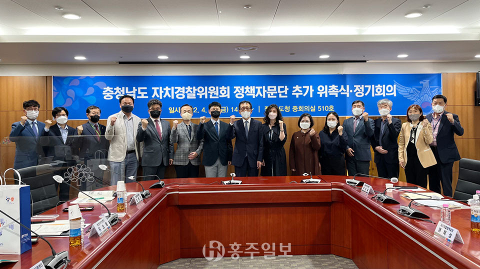 충남자치경찰위원회(위원장 권희태, 이하 위원회)는 지난 22일 도청 회의실에서 상반기 정책자문단 정기회의를 개최하고, 도민 맞춤형 치안서비스 시책 개발을 논의했다.<사진>