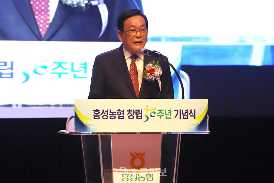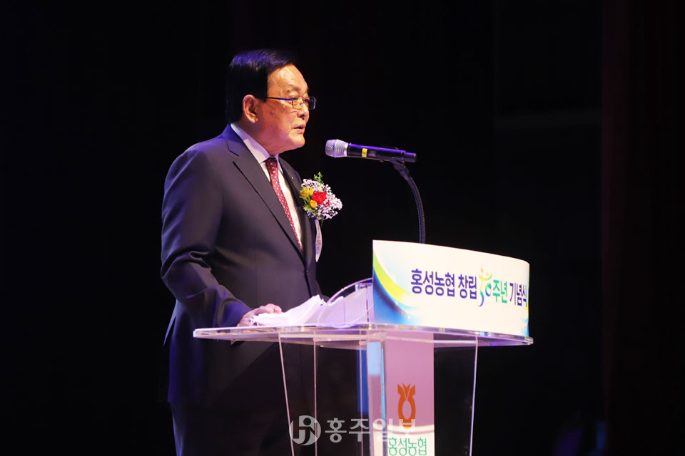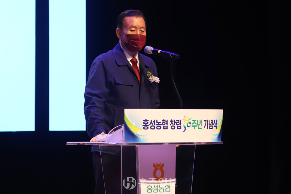 정해명 조합장은 “오늘은 지난 1972년 5월 1일 창립한 우리 홍성농협의 50주년을 맞는 뜻깊은 날”이라면서 “열악한 창립 환경 속에서도 발전을 거듭해 자산규모 5000억 원, 자본금 720억 원, 연간 사업량 1200억 원을 상회하는 거점 복지 농협으로 우뚝 서게 됐다”고 자평했다.
