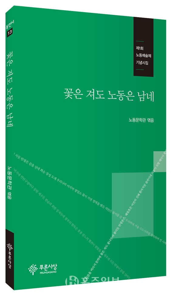 노동문학관에서 주최한 제1회 노동예술제 기념 시집 ‘꽃은 져도 노동은 남네’가 ‘푸른사상 동인시 13’을 통해 출간됐다. 노동자들의 힘겨운 삶과 날카로운 현실의식을 대변하는 시인 마흔한 명의 작품을 수록했다. 노동과 노동예술의 가치를 되새기는 묵직한 시들은 시대의 희망을 찾는 시인들의 노래로 울려 퍼진다.