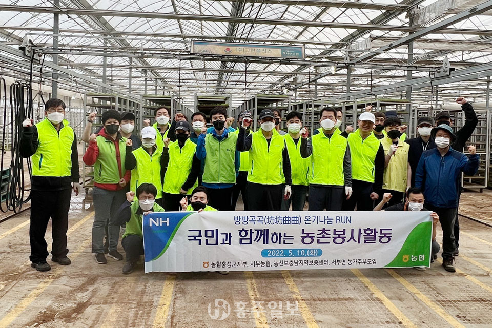 이번 일손돕기는 방방곡곡(坊坊曲曲) 온기나눔 RUN ‘국민과 함께하는 농촌봉사활동’의 일환으로 농협 홍성군지부, 농신보 충남지역보증센터, 서부농협 임직원과 서부면 농가주부모임 회원 30여명이 참여했으며, 10일 새벽 5시 30분부터 벼 육묘파종과 묘판 녹화장 출고작업 등을 실시했다.