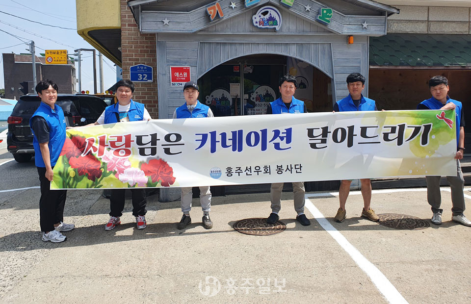 홍주선우회 봉사단(회장 전명수)는 지난 7일 어버이날을 맞이해 관내 독거노인 28명을 대상으로 댁에 방문해 카네이션 달아드리고 선물을 전달하는 등 ‘사랑 담은 카네이션 달아드리기’를 실시했다.<사진>