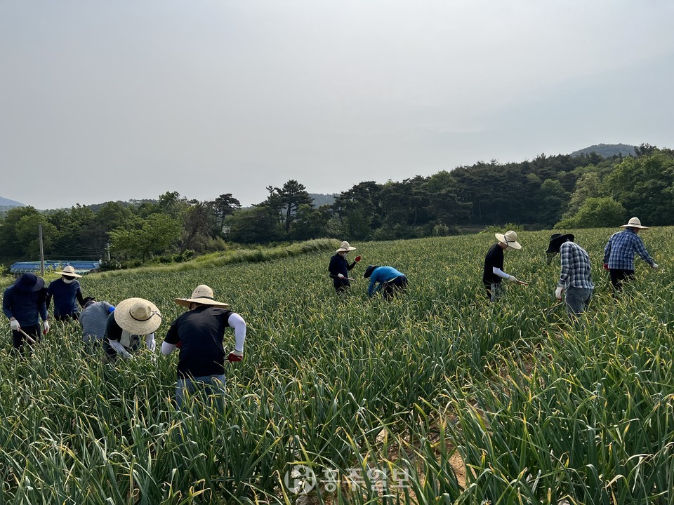 이날 직원들은 3305.79㎡ 가량 농지에서 마늘종 제거작업을 했다. 특히 농가에 부담을 덜기 위해 작업도구와 필요물품을 자체적으로 준비한 것으로 알려졌다.