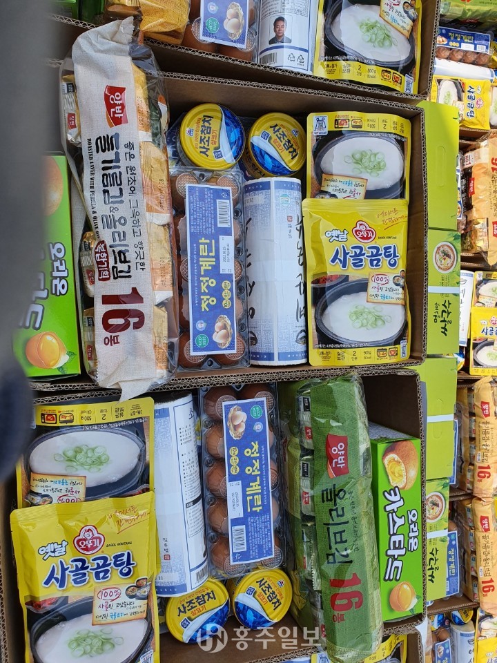 쌀, 계란 국수 등 11종의 품목 담은 꾸러미 전달