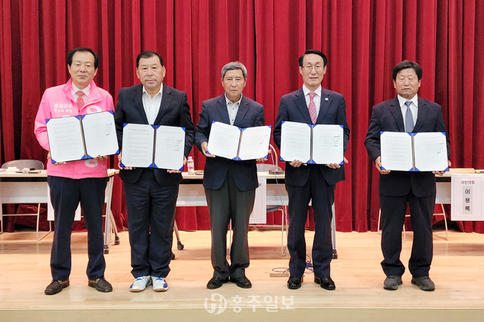 (사)홍성군농어업회의소(회장 김선태, 이하 회의소)는 지난 23일 홍성군수 후보들을 초청해 ‘제8회 전국동시지방선거 홍성군수 후보자 초청 농업정책 협약식’을 개최했다.<사진>