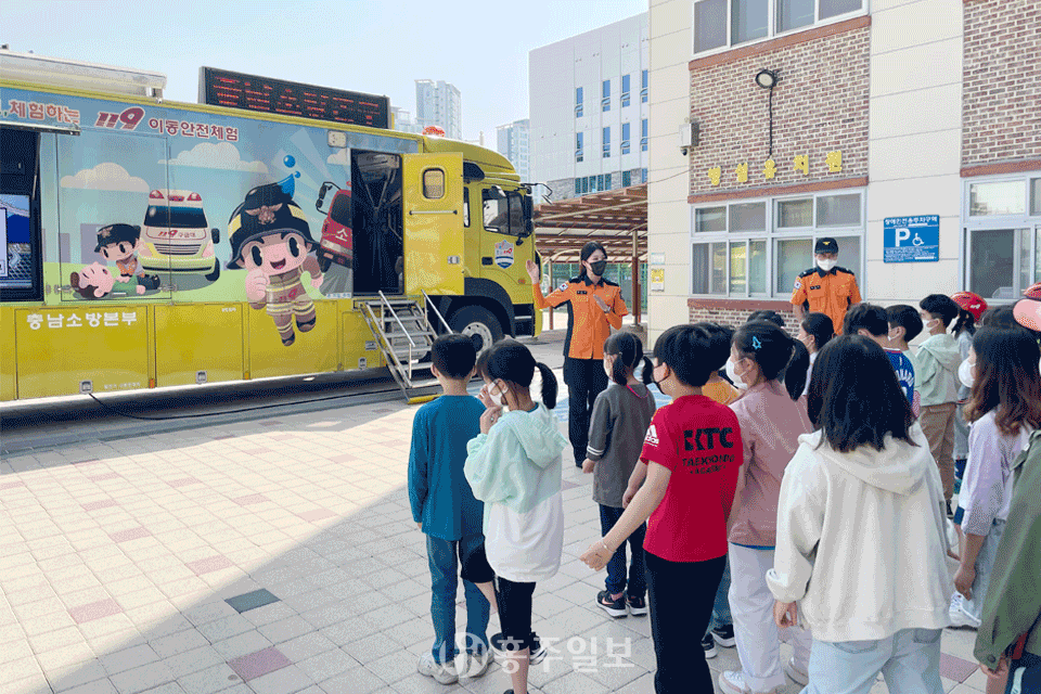 홍성소방서(서장 김성찬)는 지난 16일부터 18일까지 내포초등학교를 방문해 교직원과 학생 700여 명에게 이동안전체험차량을 이용한 119안전체험교육을 실시했다. 교육 내용은 △지진 시 행동요령 △119 신고요령 등이다.<사진>