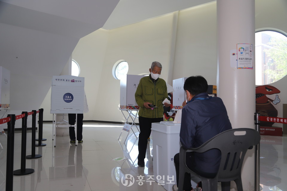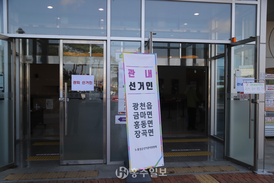 광천읍 사전투표소인 광천문예회관 1층 현관에서는 인근 유권자 어르신들이 삼삼오오 함께 걸어오는 모습을 볼 수 있었다. 특히 보행보조기를 밀며 사전투표소에 걸어와 권리를 행사하는 어르신은 한 표의 소중함을 몸소 보여주기도 했다.