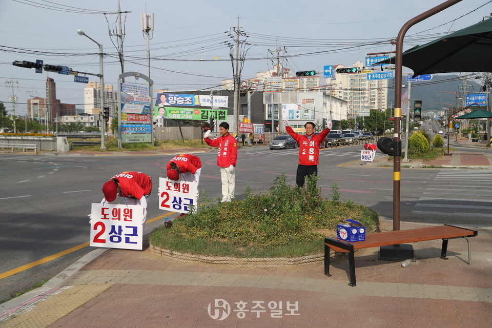 이른 아침부터 지방선거 후보들의 유세 이어져
