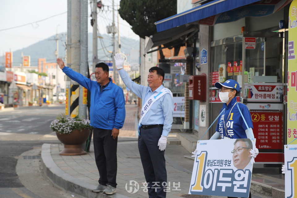 6·1 전국동시지방선거의 사전투표가 이틀 차에 접어든 가운데 이른 아침부터 지방선거 출마자들의 유세가 이어졌다.<사진>