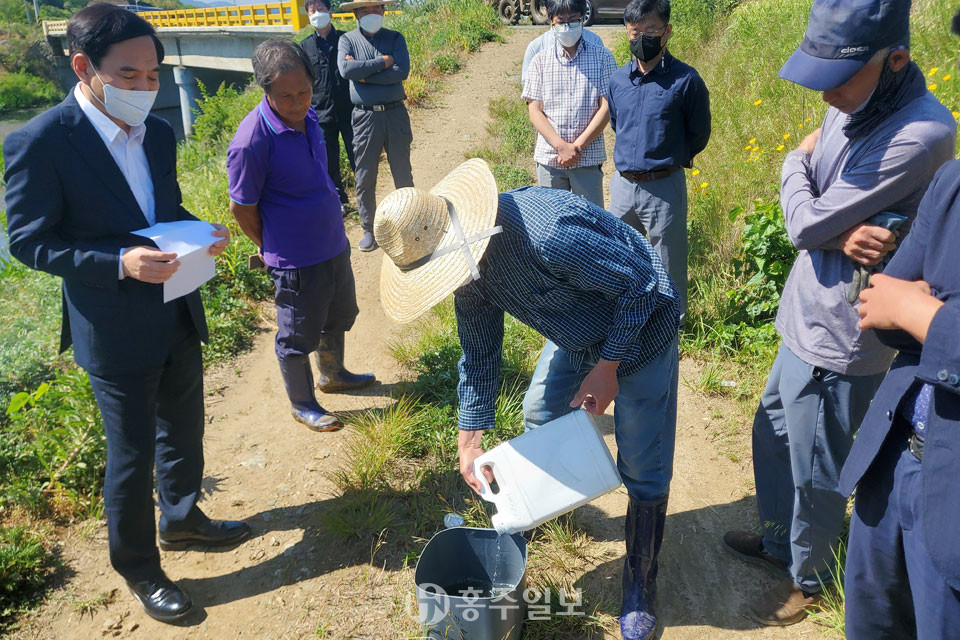 지난달 26일 현장을 방문해 농민들을 만난 길영식 홍성군 부군수는 “민원을 받고 세 차례에 걸쳐 조사한 결과 벽계리 김 특화단지에서 나온 오폐수가 상지천으로 유입되는 것을 확인했다”며 “배출허용기준을 초과한 업체에 방지시설 개선명령을 통지하고 초과배출부과금을 부과할 계획”이라고 밝혔다.