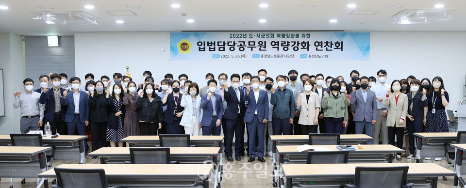 충남도의회(의장 김명선)는 지난달 26일 충청남도보훈관에서 충남도의회와 시·군의회 입법담당 공무원 약 80여 명을 대상으로 ‘2022년 입법담당공무원 역량강화 연찬회’를 개최했다.<사진>