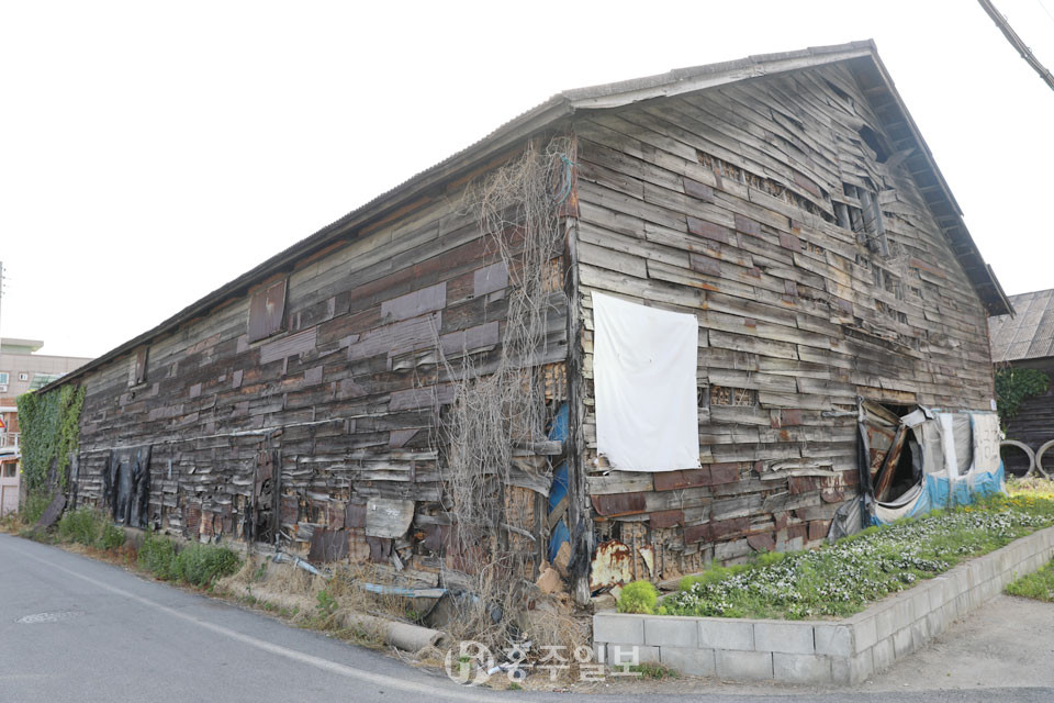 강경읍 주택가 외곽의 이면도로 한켠에 허물어진 두 개의 건물이 담쟁이 넝쿨에 휩싸여 있다. 오래전 미곡창고로 쓰였던 건물의 흔적이다. 창고 터의 직선 길이는 100m는 족히 넘어 보인다. 허물어진 벽 사이로 옛 건축기법이 그대로 보이는 어마어마한 규모의 창고 건물이 옛터 위에 재생을 갈구하듯 외롭게 서 있다.