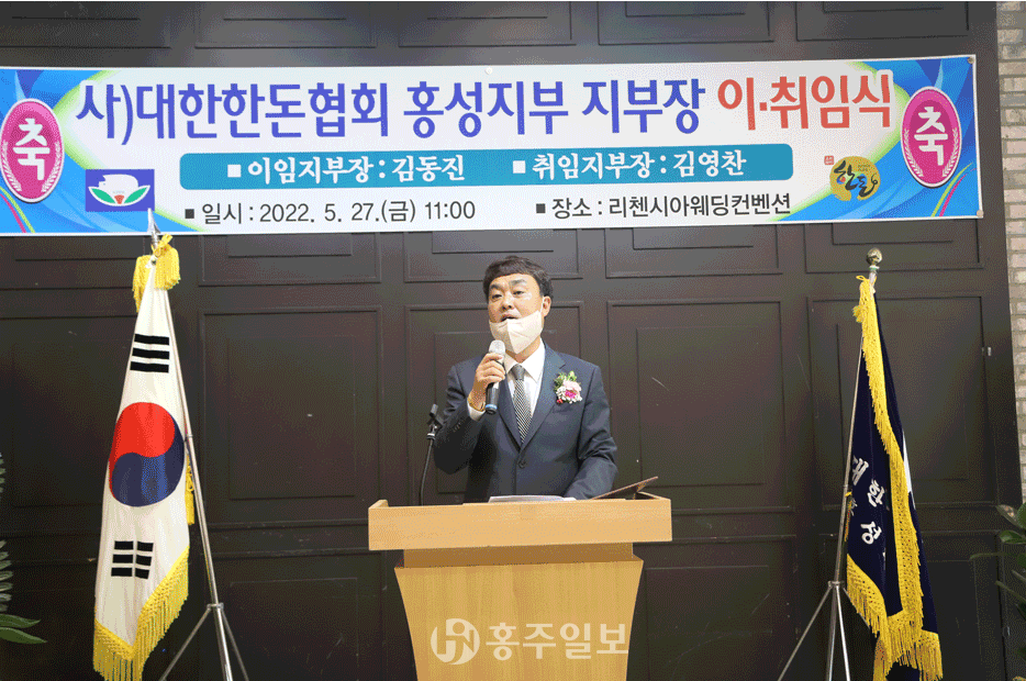 (사)대한한돈협회 홍성지부(이임지부장 김동진·취임지부장 김영찬)는 지난달 27일 리첸시아웨딩컨벤션에서 ‘대한한돈협회 홍성지부 지부장 이·취임식’을 개최했다.<사진> 이날 행사는 홍문표 국회의원, 김승환 홍성군 경제문화농업국장, 신인환 군 축산과장, 유철식 군 환경과장 등 내·외빈이 참석한 가운데 진행됐다.