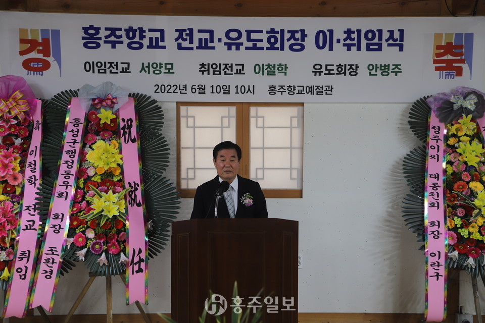 서양모 이임전교는 “새로운 시대에 맞게 제도를 정비하고 지역을 찾게 해서 명실공히 내포 지역의 중심이 되는 향교를 만들려고 했으나 뜻을 이루지 못해 아쉽다”라며 “신임 이철학 전교의 취임을 진심으로 축하하며 앞으로 홍주향교가 더 발전하고 젊어지고 모두가 화합하는 향교가 되기를 기대한다”고 말했다.