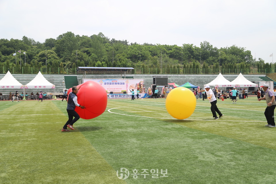 광천읍민들이 지난 12일 화창한 날씨 속에 한바탕 잔치를 즐기며 지역 주민들과 함께 동심으로 돌아가는 체육경기를 했다.