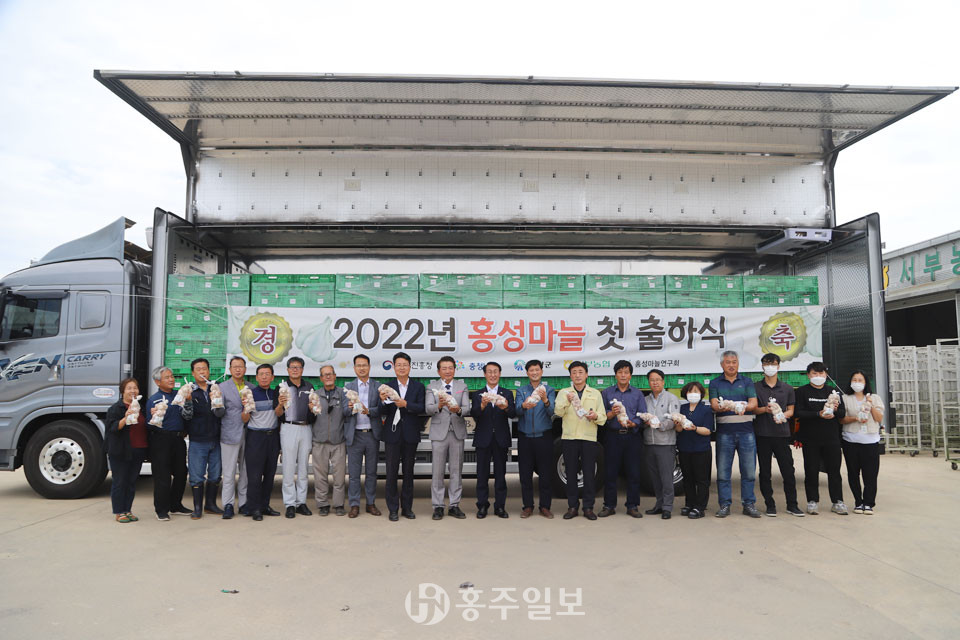 홍성(홍산)마늘이 지난 14일 서부농협 육묘장에서 첫 출하 기념행사를 가지고 전국 소비자에게로 올해 첫 발걸음을 뗐다.