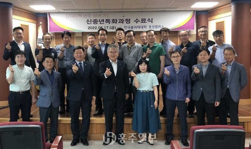 한국폴리텍IV대학 홍성캠퍼스(학장 장우영)는 지난 17일 상록관에서 상반기 신중년특화과정 ‘전기내선공사 직종’ 수료식을 실시했다.<사진>