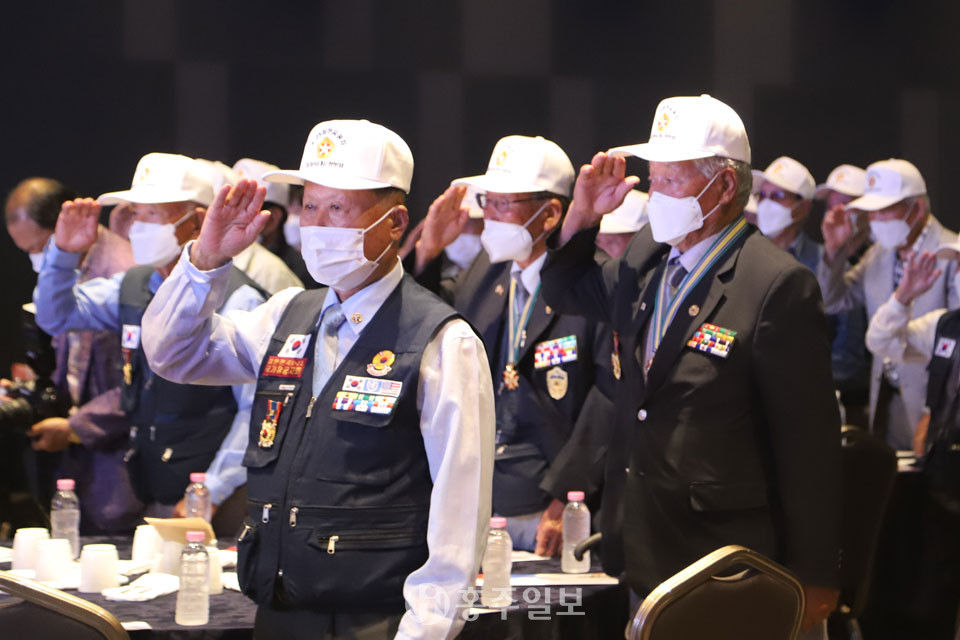 한국전쟁 발발 72주년을 맞아 지난 21일 덕산스플라스리솜에서 ‘6·25전쟁 제72주년 기념-지켜낸 자유 지켜갈 평화’가 개최됐다. 홍성·태안·청양 등지의 6·25 참전유공자들이 참석한 가운데 홍성에서는 32명의 호국영웅이 참석했다.