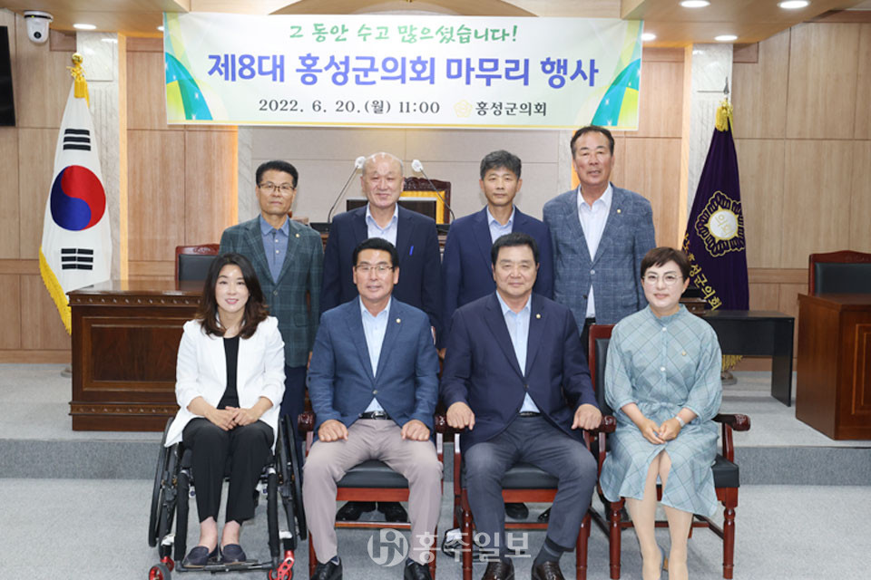 7월이 가까이 오며 제8대 홍성군의회가 마무리되고 새로운 홍성군의회가 의정활동을 준비해 가고 있다. 제8대 군의회(의장 이선균)은 지난 20일 군의회 본회의장에서 ‘제8대 홍성군의회 마무리 행사’를 개최하고 4년간의 공식 일정을 마무리했다.<사진>