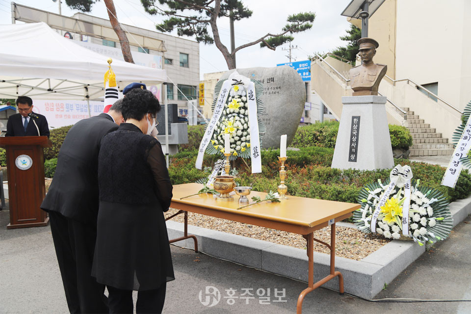 이번 행사에는 고 한상국 상사의 유족과 신주철 광천읍장, 홍경화 충남서부보훈지청장, 이용록 홍성군수 당선자, 이상근·이종화 충남도의원 당선자, 권영식·이정윤 홍성군의원 당선자와 보훈단체 관계자를 비롯한 내·외빈 150여 명이 참석해 고인을 추모했다.