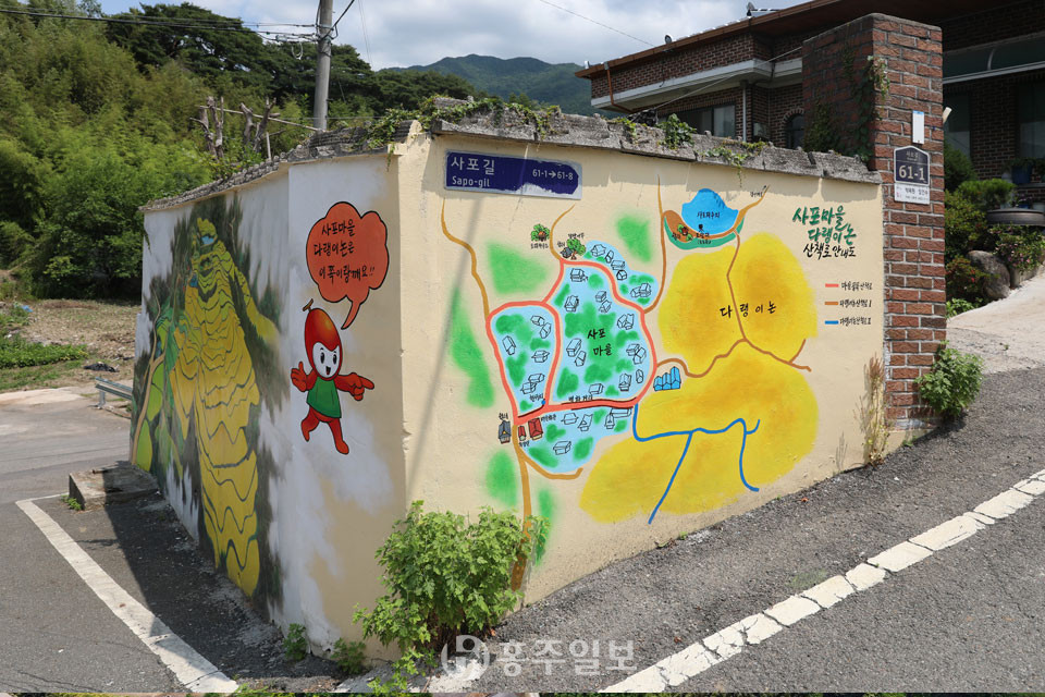 겹겹 층층이 쌓인 생의 의지에 직선은 없는 곳, 오로지 한 뼘의 땅, 한 그릇의 밥을 향한 간절함과 절박함이 낳은 곡선들이 굽이친다. 생의 가파름이 낳은 곡선들이 수많은 계단을 이룬 곳이다. 논 한 배미를 장만하기 위해 고단하고 시린 노동을 감당했던 사람들의 땀과 눈물이 이룬 집체예술이 바로 다랑이논이다. 골프장 건설에 맞서 온 동네 사람들이 뭉쳐 싸웠던 저력을 지닌 사포마을의 다랑이논은 사포저수지 밑으로 해서 300두럭이라 했다. 산골짜기 비탈을 타고 좁고 긴 논배미가 이어진다. 옛날에는 다랭이 수가 훨씬 더 많았는데, 이제는 합배미가 더 많다고 한다. 옛날엔 60호를 훌쩍 넘기던 사포마을은 이제 절반으로 줄었다. 이웃들이 하나둘 떠나간 고향을 떠나지 않고 지키며 살아오노라니 시나브로 땅이 많아졌다는 설명이다.