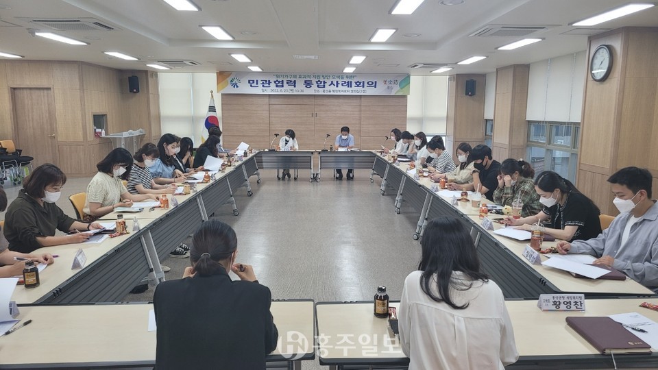 홍성군은 지난 23일 홍성읍 행정복지센터에서 위기가구의 효과적 지원 방안을 모색하기 위한 2022년 1차 민·관 통합 사례 회의를 개최했다.<사진>
