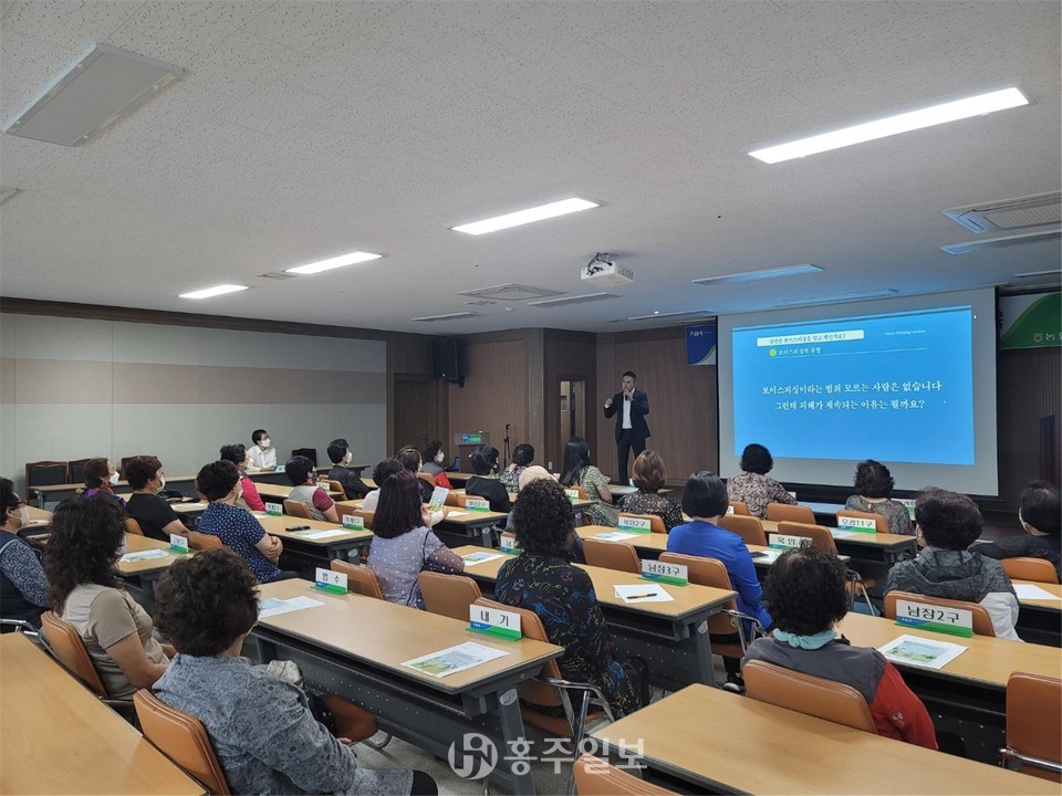 홍성농협(조합장 정해명)은 지난 17일 본점 대회의실에서 홍성읍내 부녀회장들을 대상으로 ‘전기통신 금융사기 피해 및 대포통장 근절을 위한 예방교육’을 실시했다.<사진>