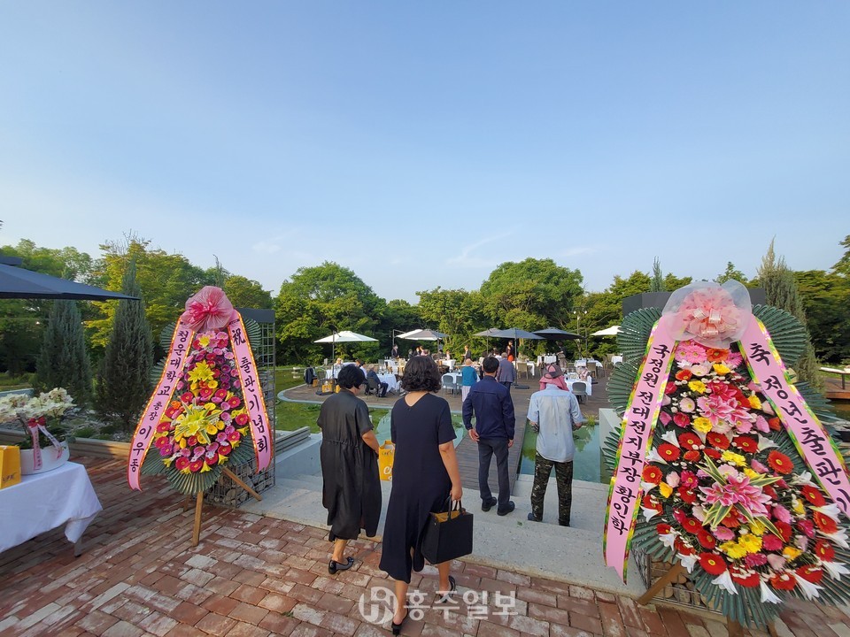 ㈜홍주일보사가 주최하고 청운대학교 영어과 동문회가 주관한 이날 행사에는 이우종 청운대학교 총장을 비롯한 청운대학교 교수진과 관계자, 이용록 홍성군수 당선자, 이상근 충남도의원 당선자, 한관우 ㈜홍주일보사 대표이사, 한기원 편집국장 등 수많은 내·외빈이 참석해 자리를 빛냈다.