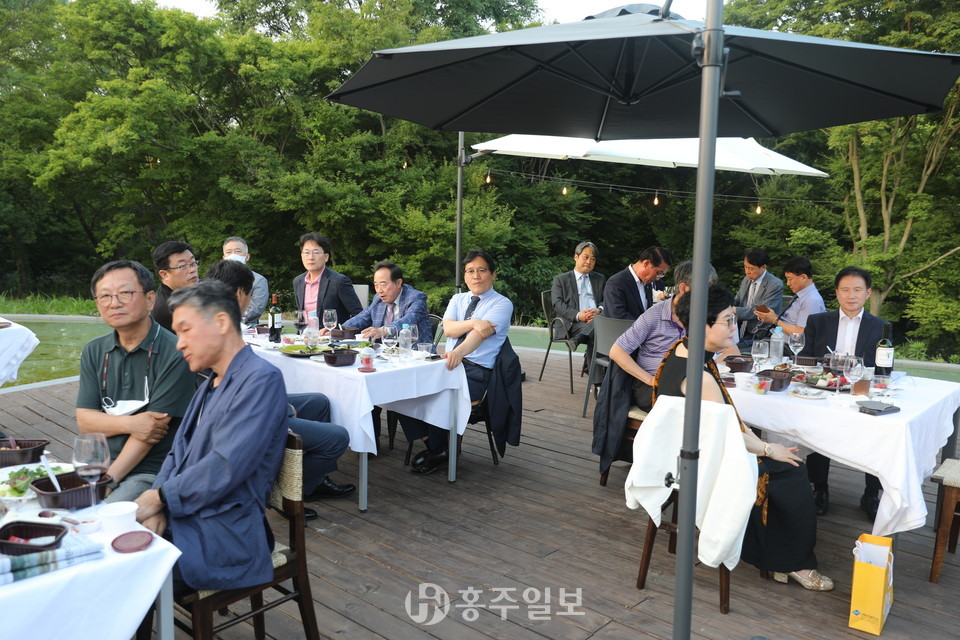 한관우 홍주일보사 대표이사는 환영사를 통해 “김상구 교수는 홍주일보사 창간부터 지금까지 동반자로서 예리한 통찰력과 필력으로 많은 독자들에게 삶의 희망과 공감의 화두를 전했다”라며 “김상구 교수의 앞날에 희망과 행복, 행운과 건승을 축원드린다”라고 말했다. 이어 “참석해주신 모든 분들이 의미 있고 소중한 시간이 보내길 진심으로 기원한다”라며 환영인사를 갈음했다.