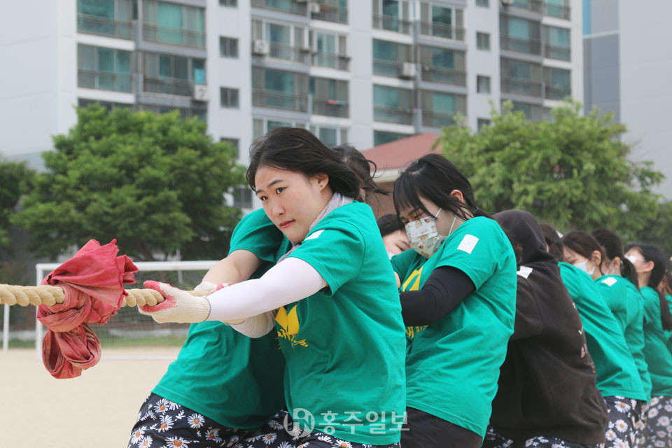 코로나19로 인해 학생들에게는 고등학교 입학 후 처음 개최된 것이다. 19일 진행된 체육활동은 학년별로 진행해 남학생들은 축구와 씨름 종목에 참여하고, 여학생들은 발야구, 단체줄넘기 종목에 참여했으며 남여학생 공통으로 줄다리기, 계주에 참여하며 학년별, 학급별 단합을 도모했다.