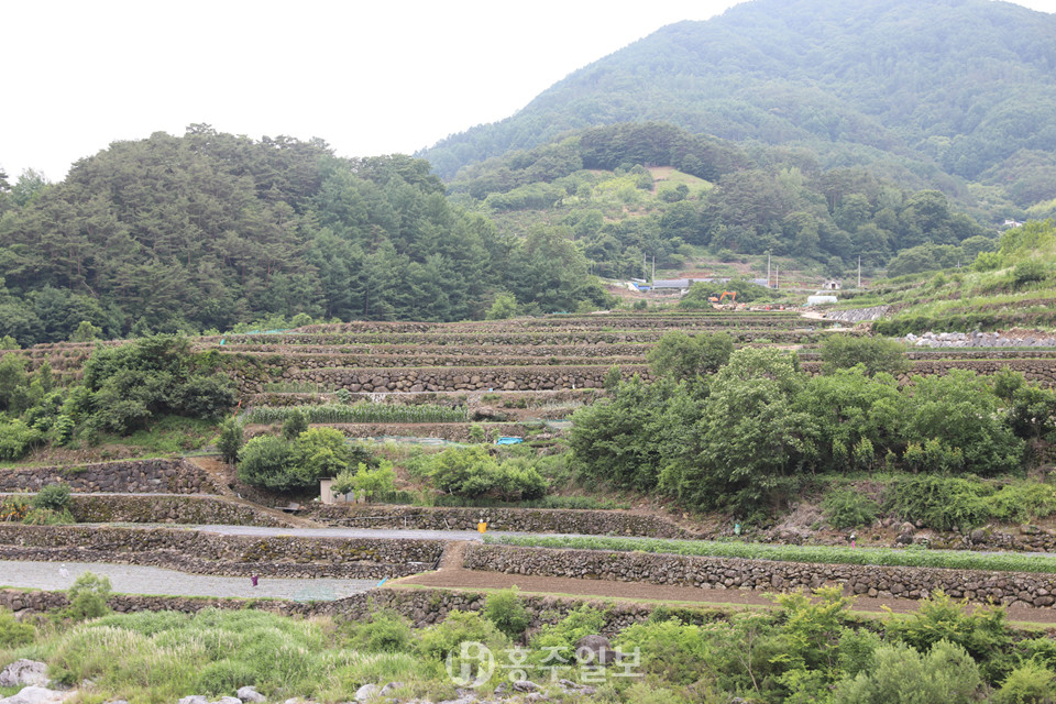 산비탈 일궈 나온 돌 쌓은 돌계단식다랑이논, 마천이 유일