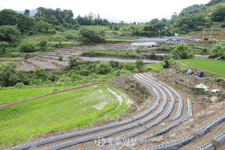 다행히 기자가 방문했을 때는 절반 정도는 모내기를 이미 실시했고, 절반 정도는 고추를 심었거나 밭농사를 짓기 위해 비닐 씌워 놓기도 한 모습이다. 마을 진입도로는 확·포장공사가 한창 진행 중이다.