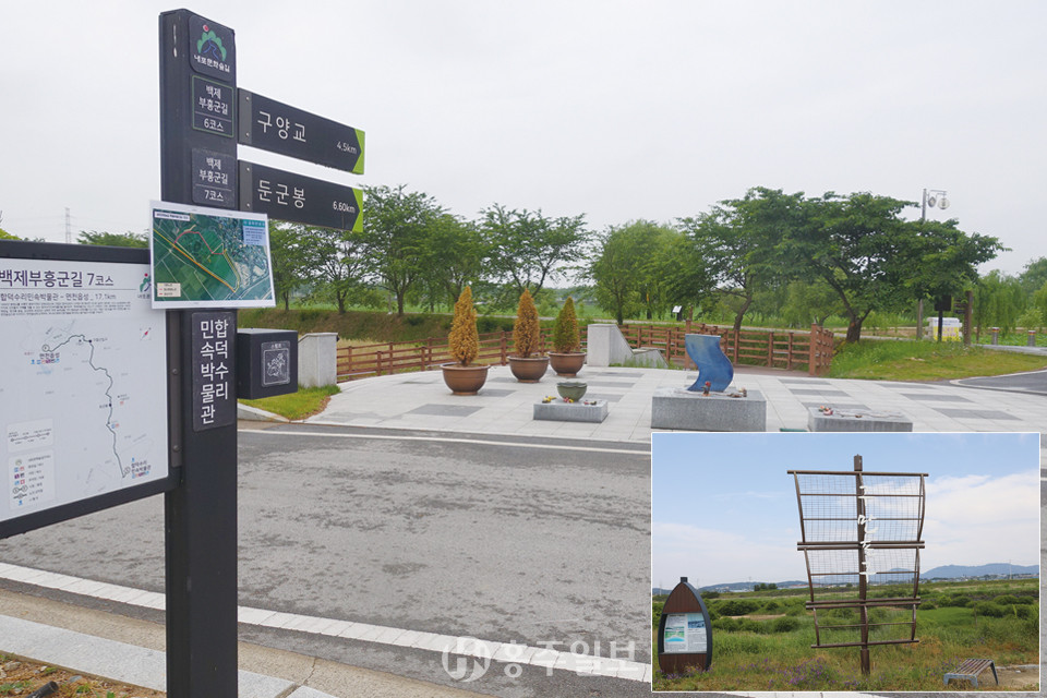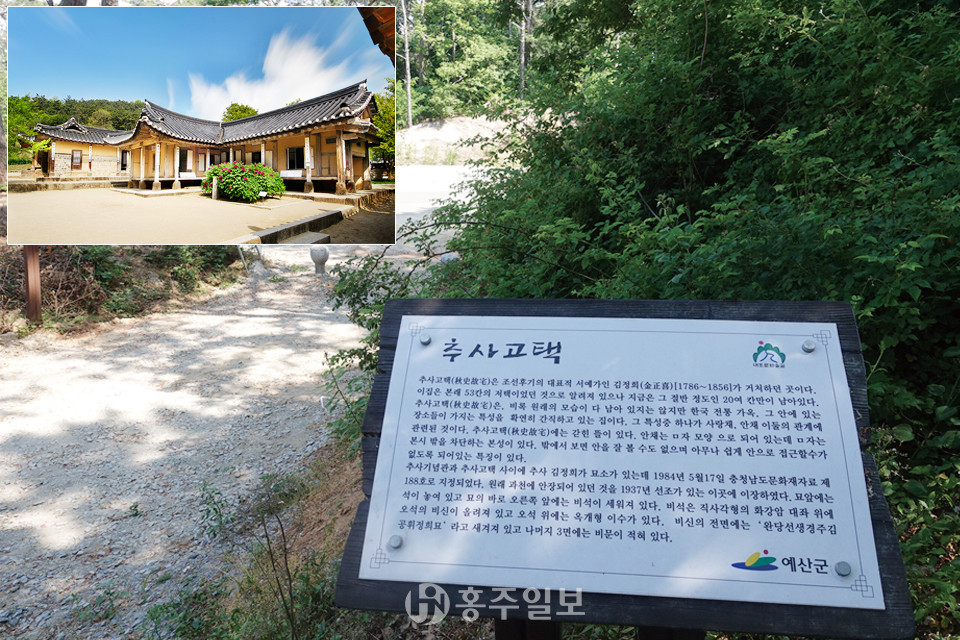 백제부흥군길 5코스에는 추사 김정희 고택이 발길을 잡는다. 선비의 고고함이 배어 있는 6칸 대청의 안채와 2칸의 안방과 건넌방, 부엌과 협문, 그리고 사랑채. 돌아보노라면 문설주와 기둥마다 추사의 글씨가 있고, 어디선가 묵향이 나고 추사의 목소리가 들릴 듯하다. 고택 왼쪽으로 천연기념물 백송과 널찍한 잔디밭이 고즈넉하다. 당진 방향으로 향하니 백제부흥군길 6코스와 천주교순례길 1코스가 겹치는 구만포구는 삽교천을 따라 6km쯤 하류에 있다. 행정구역으로는 예산군 고덕면 구만리(九萬里)이다. 구만포구기념공원에 있는 안내판에는 구만리란 ‘후미지에 있는 명당지, 즉 좋은 땅이란 뜻’이라며 ‘조선시대 내포의 교통문화중심지로 쌀과 잡곡을 서울로 수송하는 통운의 연결지로 바다에서 새우젓, 소금, 기타 해산물을 실어오는 배가 선착하던 곳이다. 땅이 기름지고 교통이 편리한 고장을 풍수지리학적으로 받아들인 마을이요, 살아있는 용의 형국이라 하고 ’배‘의 형국이라 한다’고 기록하고 있다. 새우젓배가 들어오면 인근에서 사람들이 모여들어 번화한 저잣거리가 형성됐던 풍요로운 곳이었다는 설명이다. 구만포구는 1979년 10월 26일 완공된 삽교천 방조제 건설로 포구 기능을 잃고 역사 속으로 사라지게 됐다. 계속 길을 가다 보면 조선시대 3대 저수지 가운데 하나인 당진합덕제를 기념하기 위해 건립된 ‘합덕수리민속박물관’에서 코스를 마무리 한다. 2005년 10월 26일 개관했다. 제1전시실은 수리문화관으로, 합덕제의 기원과 축조기법·한국의 수리 역사·수리 도구 등을 전시한다. 제2전시실은 합덕과 당진 문화의 형성 배경과 합덕 지역의 문화재 등을 쉽게 이해할 수 있는 문화관이다. 1만여㎡에 달하는 수리체험장에는 연못 1개와 초가 5동이 설치됐다.