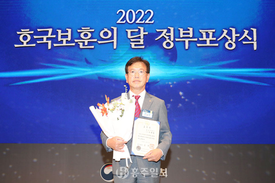 유환동 홍성문화원장이 지난 27일 서울 드래곤시티 호텔에서 개최된 ‘2022 호국보훈의 달 정부포상식’에서 국무총리표창을 수상했다.