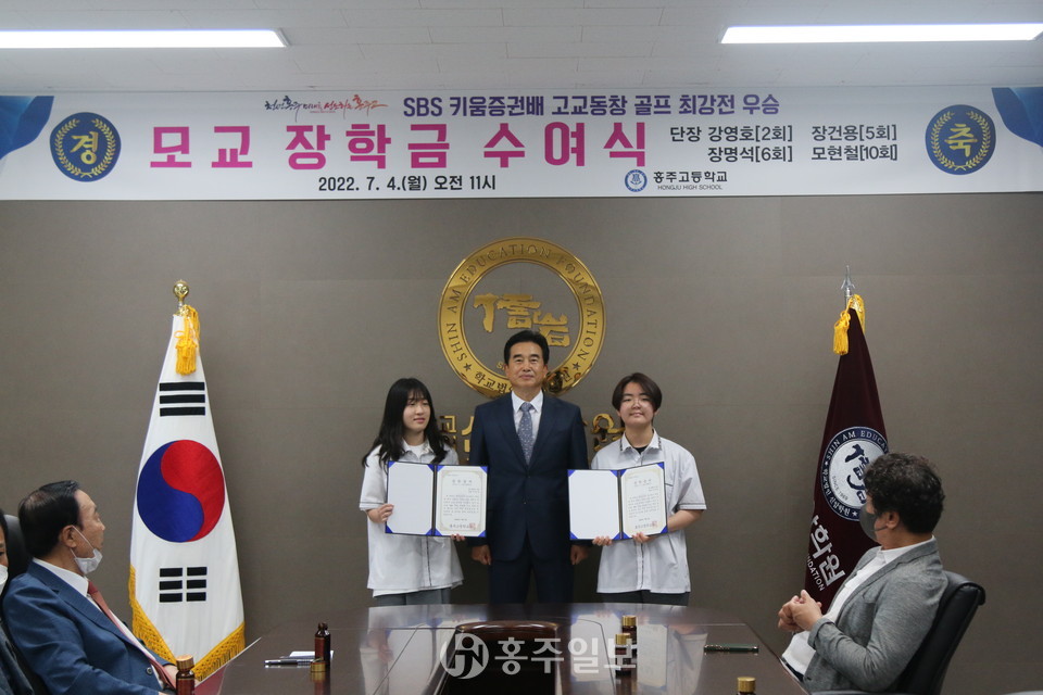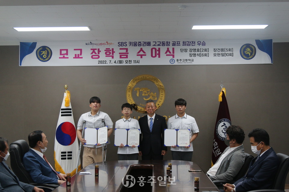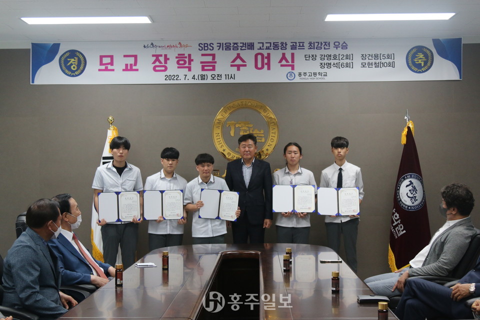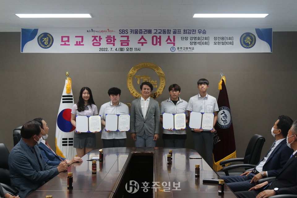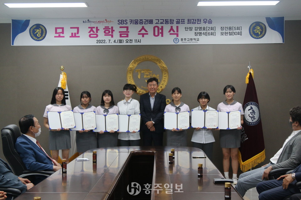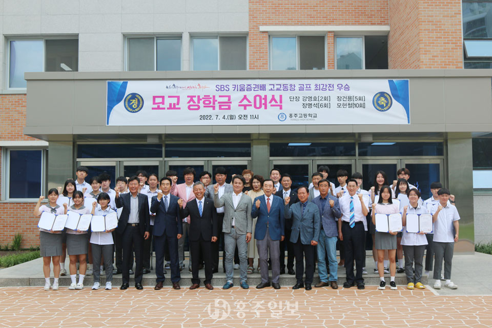 지난해 홍주고등학교 골프 동문 선수단이 ‘제17회 키움증권배 고교동창 골프 최강전’에서 우승하며 모교에 기탁한 2000만 원의 장학금이 지난 4일 홍주고등학교 재학생 20여 명에게 전달됐다.
