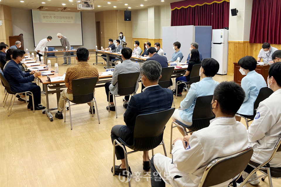 홍성의료원 주민참여위원회(위원장 전용택)는 지난달 30일 별관 대회의실에서 다양한 의견수렴을 통해 코로나19 이후 의료원 경영 정상화를 위한 ‘2022년도 주민참여위원회 상반기 정례회의’를 개최했다.<사진>
