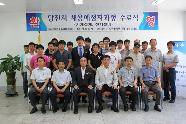 한국폴리텍대학 홍성캠퍼스(학장 정인화)는 지난 24일 기계설계와 전기설비분야의 일자리 창출 교육훈련과정의 수료식을 ‘한국폴리텍대학 당진 인적자원개발센터’에서 실시했다. 이번 교육 과정은 당진지역의 산업현장에서 필요로 하는 융합형 산업인력을 양성하여 취업난을 해소하고, 기업체의 인적자원 개발을 위해 진행됐으며 지난 4월 19일 당진시와 업무협약을 체결한 이후 당진시 구청사 제 2별관을 리모델링해 강의실, 실습실 등을 갖추고 교육이 이뤄졌다.