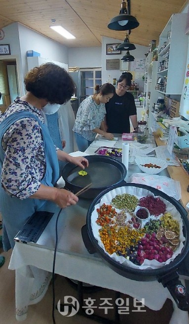 홍북초등학교(교장 남경자)는 지난 6일 학부모 학습공동체 홍부기 회원 20여 명과 ‘꽃차 만들기’ 활동을 실시했다.<사진>