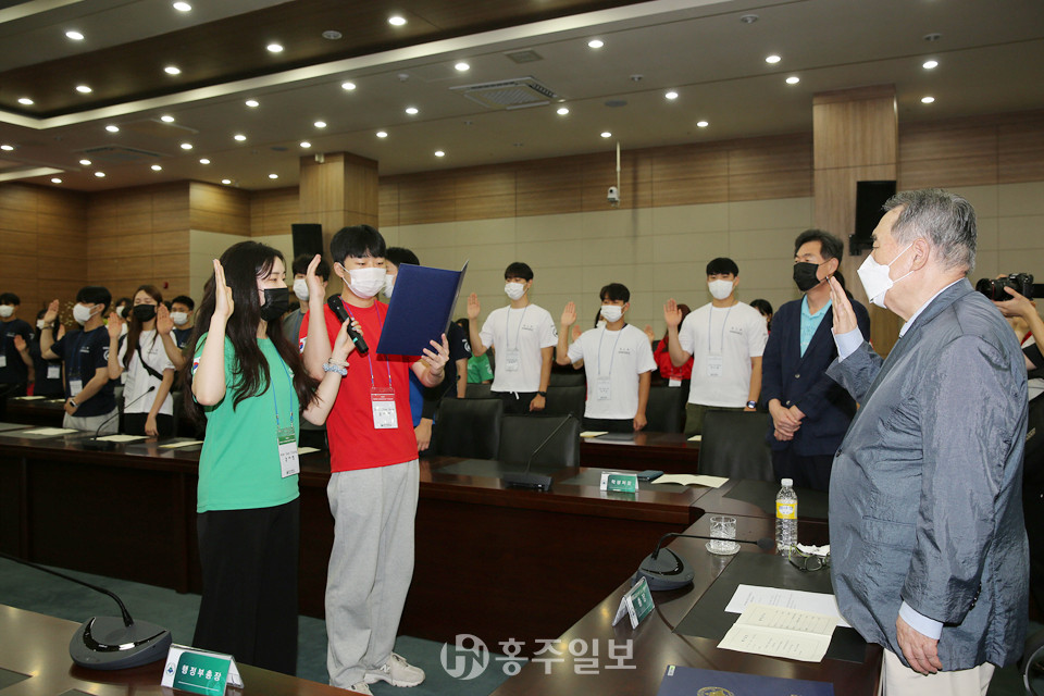 한서대학교 ‘2022 글로벌 리더십+프로그램’ 출정식이 함기선 총장과 보직교수, 행사 참가자 등 100여 명이 참석한 가운데 11일 오전 10시 한서대 본관 5층 국제회의장에서 열렸다.