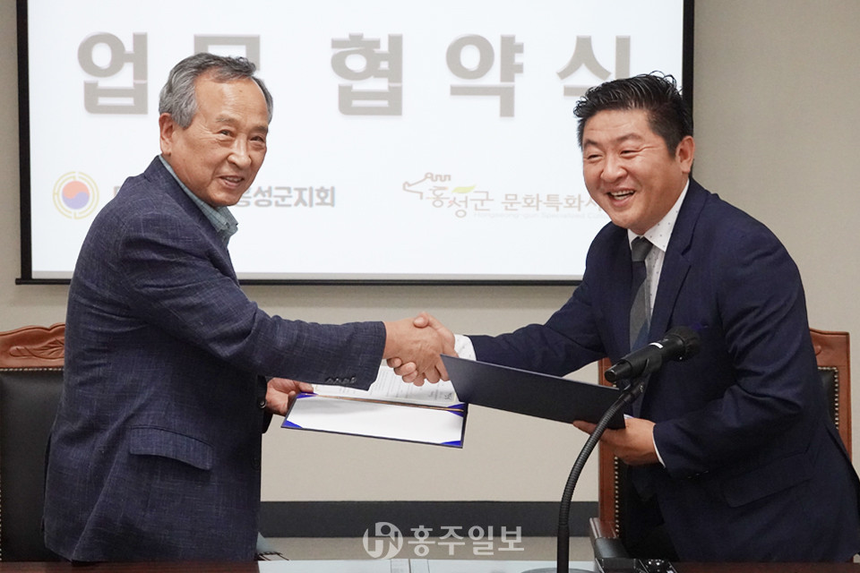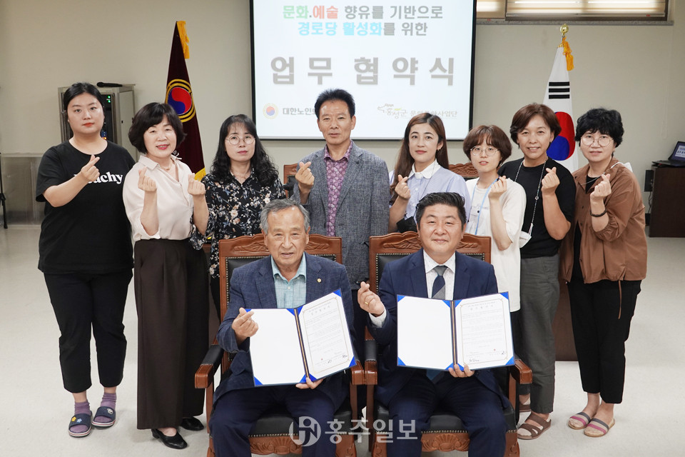 (사)대한노인회 홍성군지회(회장 조화원)와 홍성군 문화특화사업단(단장 모영선)은 지난 11일 어르신들의 행복한 문화생활을 누릴 기회를 마련하고 경로당 활성화에 협력하고자 업무협약(MOU)을 체결했다.