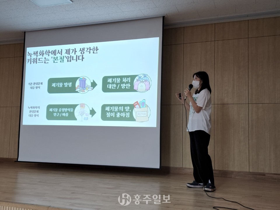 한편 이날 1~2교시는 ‘꿈 펼침 전공 탐구대회’로 본선에 진출한 7명의 3학년 학생들이 자신의 진로와 연계해 탐구하고 이를 발표하는 프로그램으로 진행됐다. 프로그램은 4명의 심사위원이 현장에서 질의응답을 실시해 학생들의 탐구 내용의 깊이와 진정성을 확인한 후 평가까지 이뤄졌다.