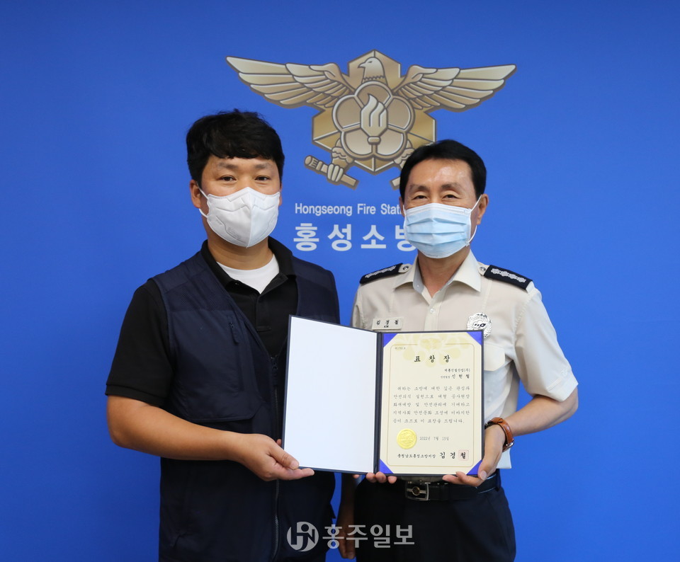 홍성소방서(서장 김경철)가 공사장 현장안전 관리 분야에 크게 기여한 계룡건설산업(주) 소속 김정기 현장소장과 신헌철 안전팀장<사진>에게 표창을 수여했다.