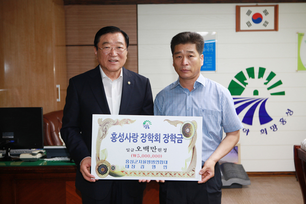 홍성군자율방범연합대(대장 김영민)는 지난 20일 오전 10시 홍성군청을 방문해 김석환 군수에게 홍성사랑장학회 장학금으로 써 달라며 500만원을 기탁했다. 이날 장학금 기탁은 지난 14일 홍성군자율방범대 주최로 열린 ‘홍성사랑 개그콘서트‘의 수익금 중 일부로, 자율방범대 관계자는 “군민의 성원 속에 행사가 성공적으로 치러진데 대한 감사의 뜻을 담아 장학금을 기탁했다”고 밝혔다. 저작권자 © 홍주일보 무단전재 및 재배포 금지 최선경 편집국장 다른기사 보기 페이스북 카카오톡 URL복사 기사공유하기